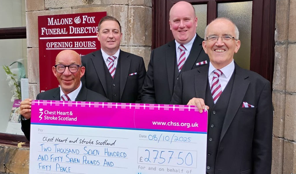 Chest Heart & Stroke Scotland provides vital support, rehabilitation, and community services to help people rebuild confidence and independence after illness. The funds raised by Malone & Fox will go directly towards life-changing services across the country.